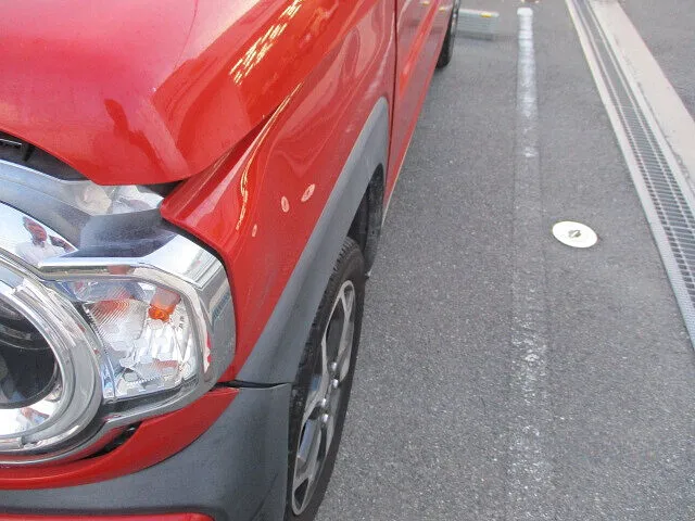 運転席側に大きな損傷が、、、ハスラーの可愛いお顔が大変なことに、、、