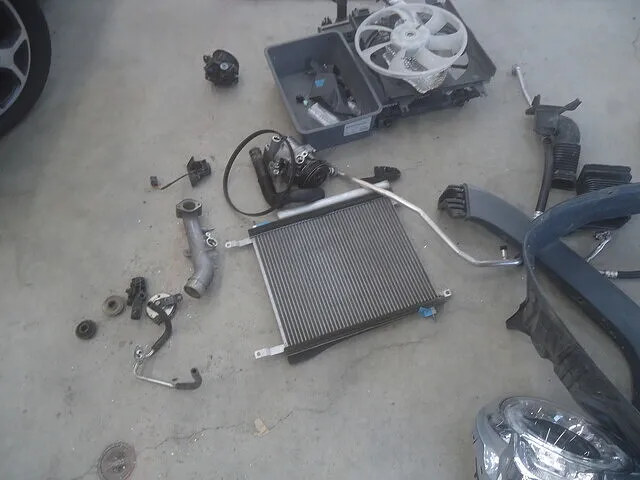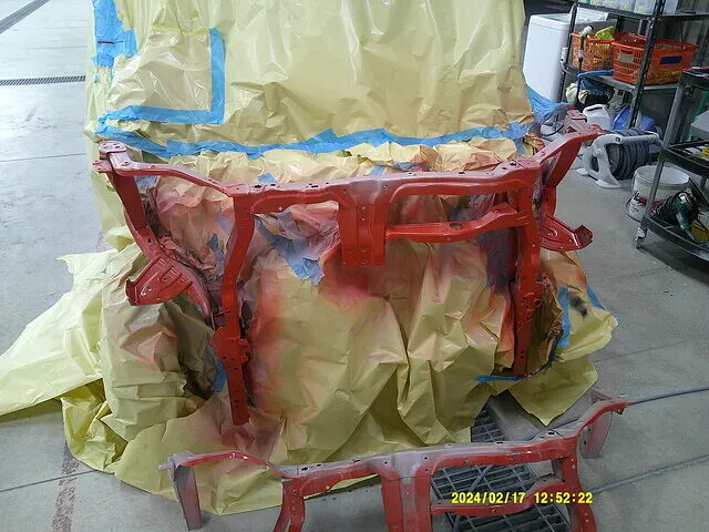 Fバンパー・左右ヘッドライト・左右Fフェンダー・バルクヘッド(骨)の交換をします。