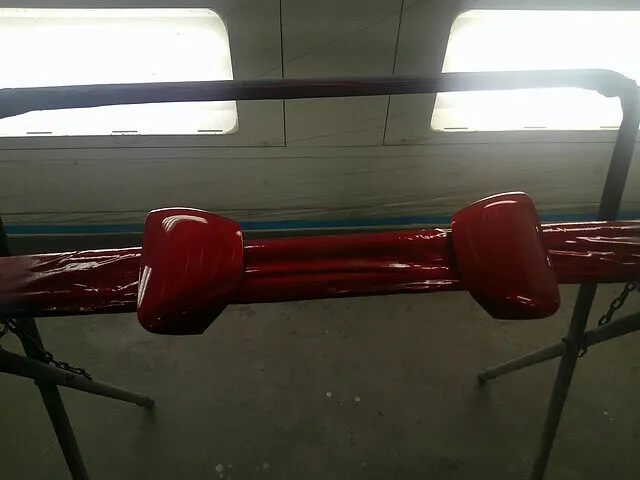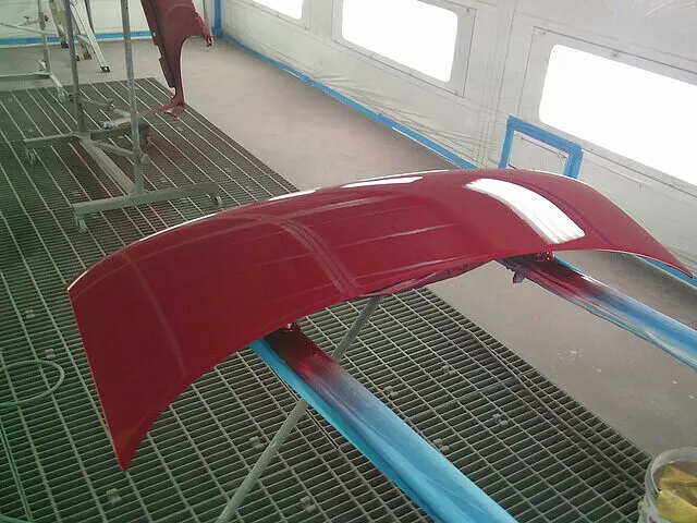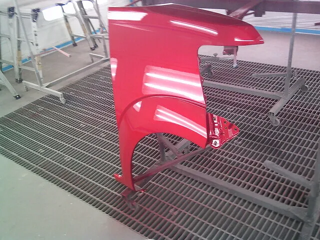 華やかなカラークリヤの赤、R565M(プレミアムクリスタルレッドメタリック)に全塗装。