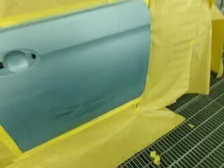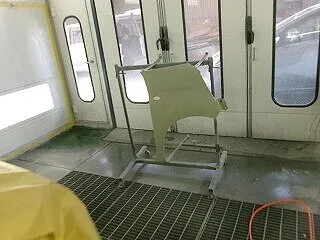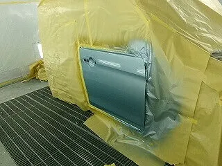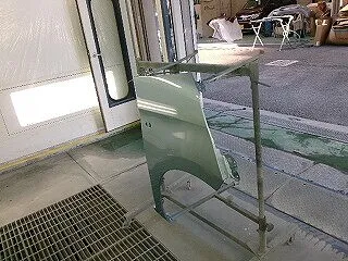 フロントフェンダーの新品を塗装。色合わせでフロントドアも塗装します。