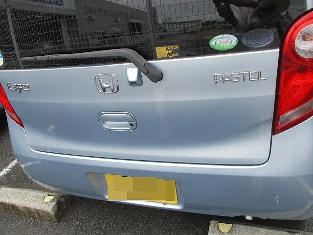 全塗装ご希望のライフが入庫しました。経年劣化で全体的に褪色しています。