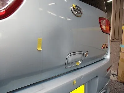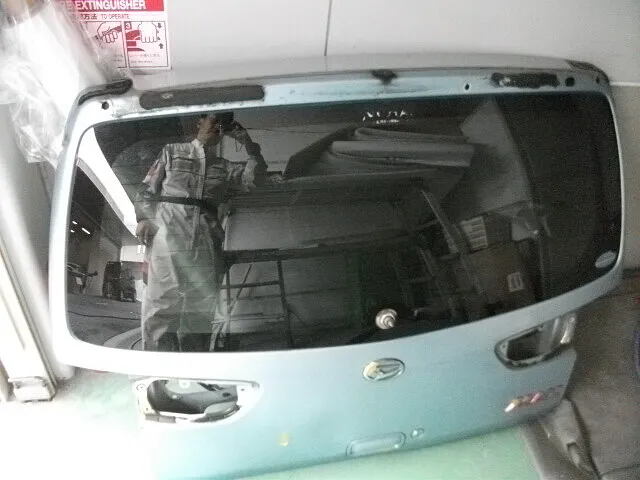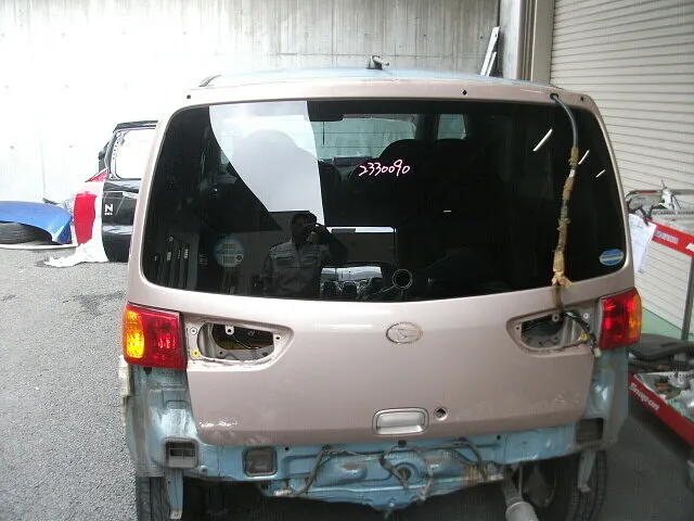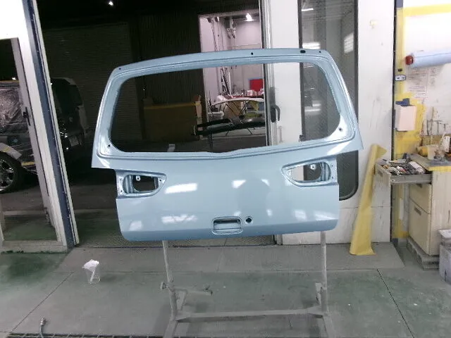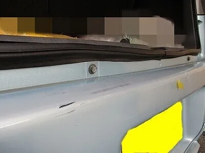 バックを当てられ、テールゲートとリアバンパーは凹み、エンドパネルにも歪みが生じていました。テールゲートとリアバンパーを取り替えなければなりませんが、年式的に部品が生産終了となっていて新品がなかった為、リサイクルパーツを使用することになりました。