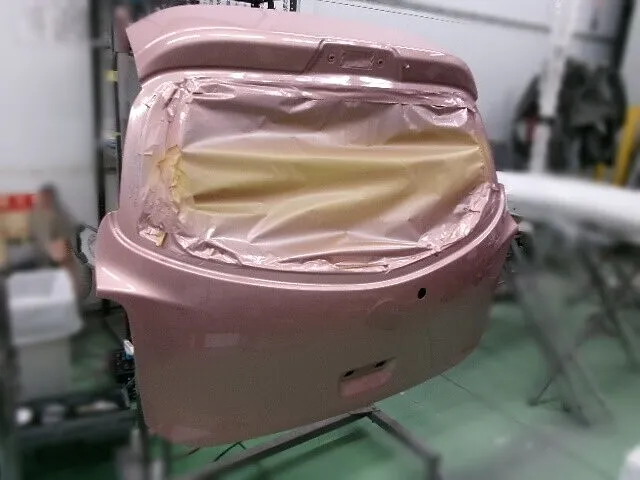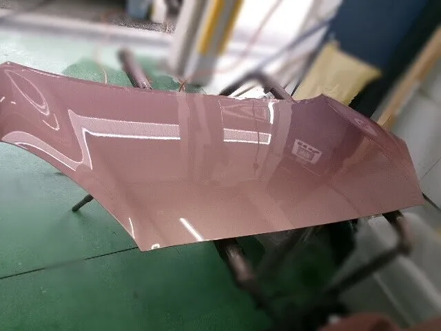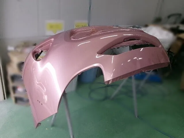 全塗装をしてほしいとのご依頼を受けました。どうせ全塗装するなら買いたかった色に塗り替えたい!!とのお客様のご希望により、シルバーに近い薄紫色をピンク色に塗り替えることになりました。