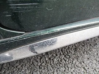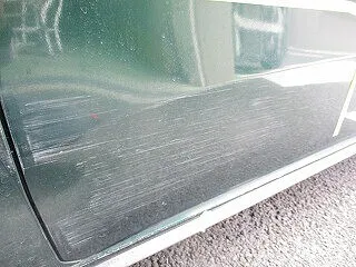 左側のフロントフェンダーとフロントドアに広範囲に亘っての浅いキズがあります。