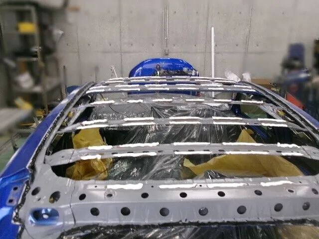 ルーフパネル交換、ボンネット交換、全てのドア修理、左右のクオーターガラス交換、左右Fフェンダー修理、左右クオーターパネル修理で作業を進めることになりました。